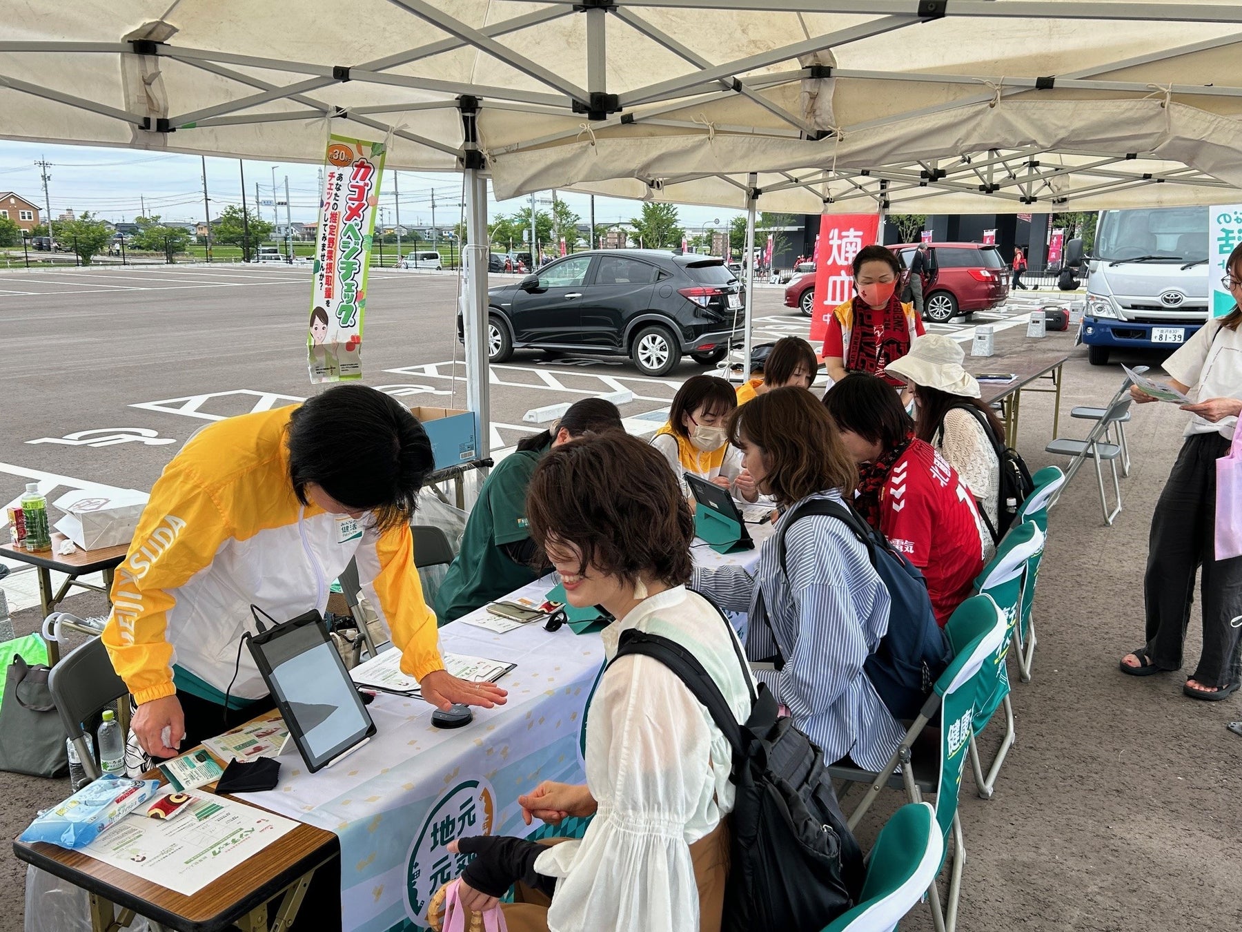 健活ブースベジチェック、血管年齢測定を実施!
