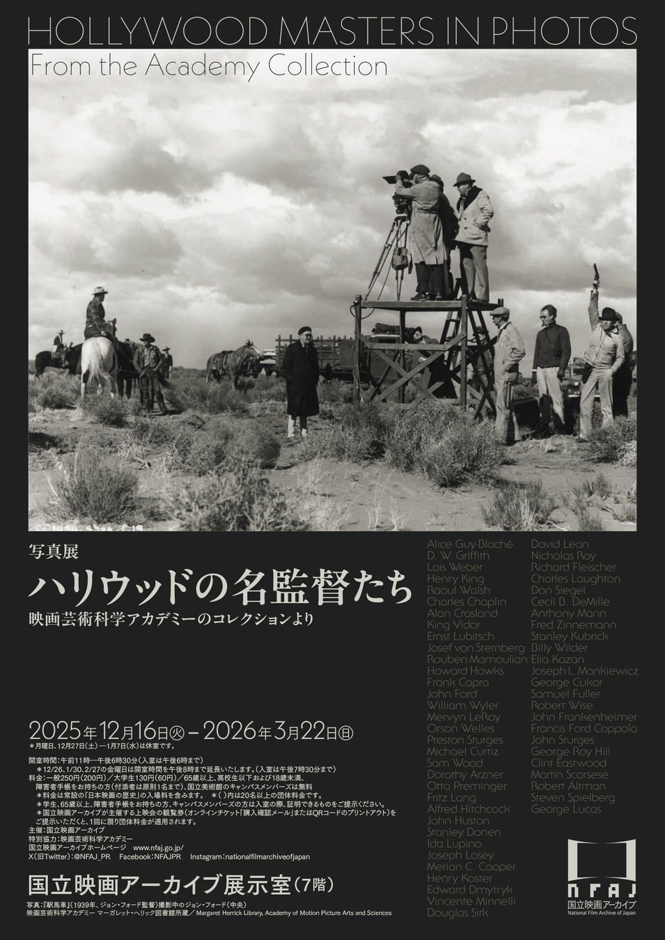 【国立映画アーカイブ】展覧会「写真展 ハリウッドの名監督たち 映画芸術科学アカデミーのコレクションより」開催のお知らせ