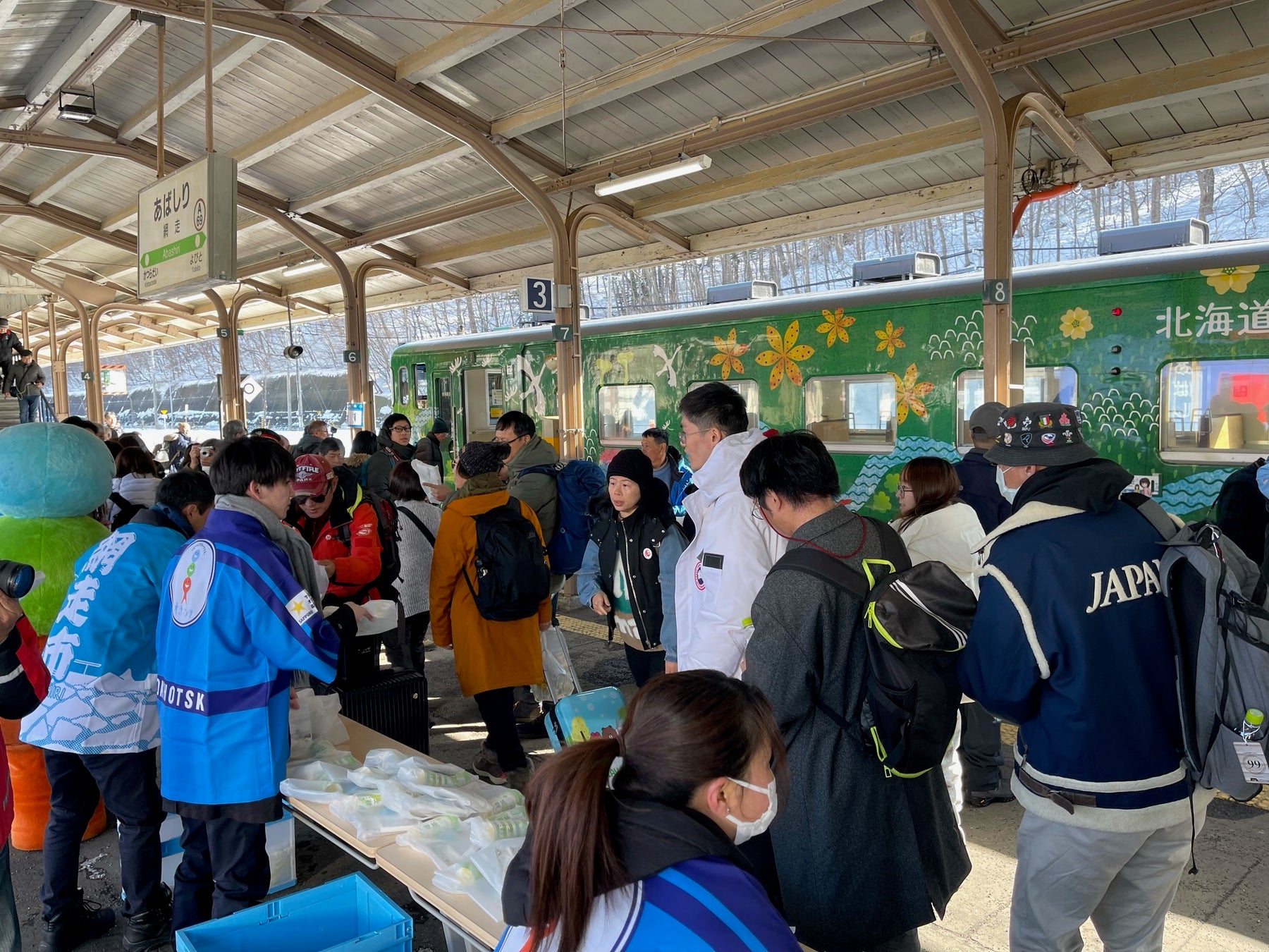 ・オホーツク総合振興局及び網走市職員が法被を着用し、列車のお見送りを実施します。
