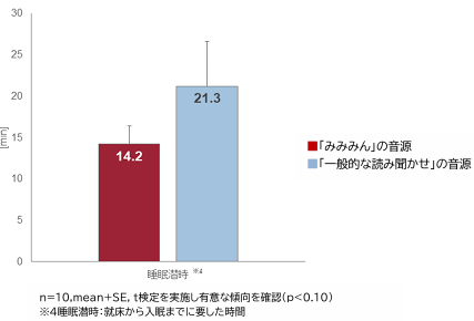 「みみみん」の音源の方が入眠までにかかる時間が短縮されることが示唆された。
