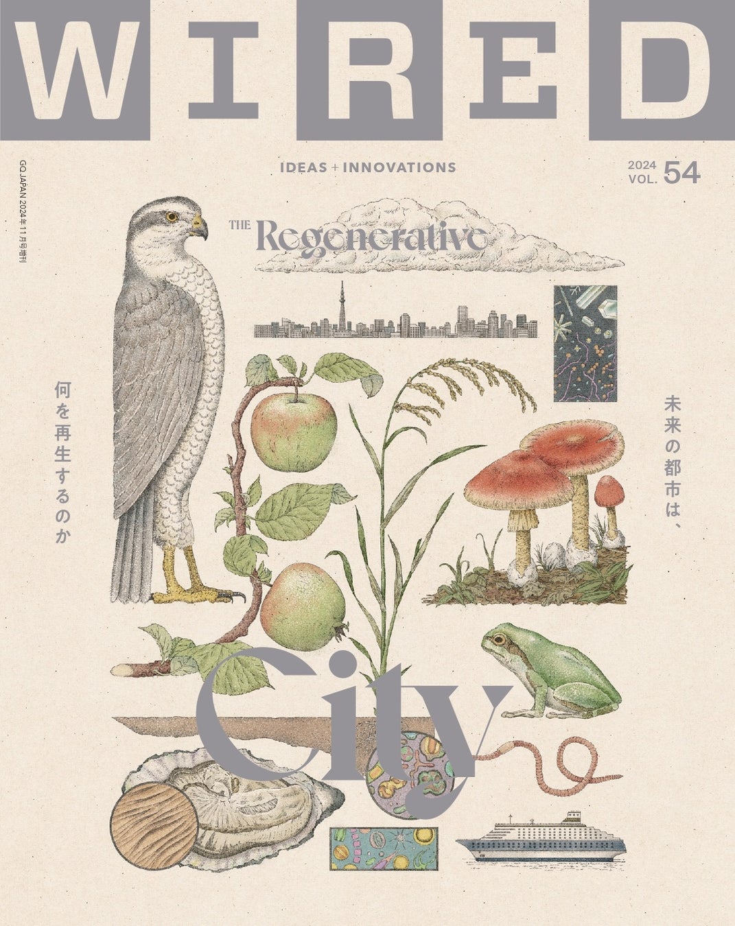 雑誌『WIRED』日本版VOL.54のテーマは「The Regenerative City 未来の都市は、何を再生するのか」。「リジェネラティブ」とは自然環境が本来もつ生成力を取り戻すことで再生につなげていく考え方で、環境再生型農業(リジェネラティブ・アグリカルチャー)などの取り組みを中心に近年注目を集めています。『WIRED』日本版では、これまでも「FOOD: re-generative(2021年3月13日発売 VOL.40)」や「THE REGENRATIVE COMPANY(2023年6月16日発売 VOL.49)」などの特集号を通じてこの概念に注目してきました。VOL.54では都市にスポットライトを当て、気候変動に伴う災害の激甚化や文化の喪失、貧困や格差など都市が直面する課題に立ち向かうためには、自然本来の生成力を生かして都市を再生する「リジェネラティブ」 の視点が重要だという考えのもと、次代の「リジェネラティブ・シティ」の姿を総力を上げて特集しています。