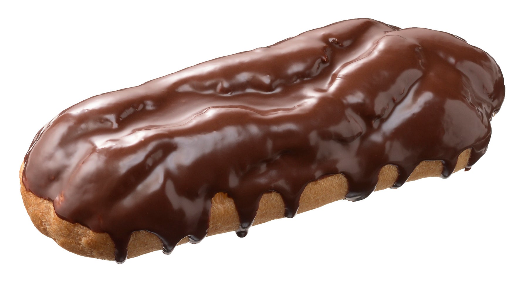 ふんわり焼き上げた口どけのよいシュー皮に、フルーティー・ビター・スイート、3種類のチョコレートにナッティ感のあるカカオを加え、コアントローでキリっと味を引き締めた、大人味のチョコレートクリームを詰めました。どっしりとした食感、濃厚でコクのある味わいです。さらに通常のエクレア(カスタード)の1.5倍のチョコでエクレアを覆うようにコーティング。チョコ好きにはたまらない、まさにプレミアムなエクレアです。