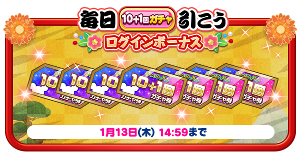 【毎日「10+1回ガチャ券」 最大7枚プレゼント】