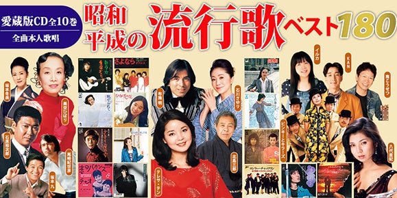 本全集では昭和から平成の輝かしい時代を彩った名曲を集大成。演歌に歌謡曲、フォーク、ポップスと幅広く収録しています。昭和・平成の時代を盛り上げ、多くの人の心に残っている、まさに珠玉の“流行歌”全180曲が集結しました。