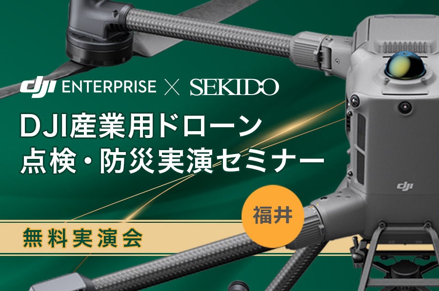 DJI(ディージェイアイ)正規販売代理店としてドローンビジネスの最前線を支える株式会社セキド(本社:東京都港区、代表取締役:大下貴之)は、日本システムバンク株式会社(本社:福井県福井市、代表取締役社長:野坂信嘉)と共催で、2025年12月15日(月)10時より福井県福井市にて、インフラ点検および災害救助に特化した産業用ドローンの無料実演会「DJI産業用ドローン 点検・防災実演セミナー」を開催いたします。