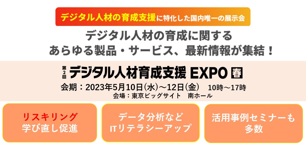 第2回 デジタル人材育成支援 EXPO【春】会期:2023年5月10日(水)~12日(金)会場:東京ビッグサイト 南ホール