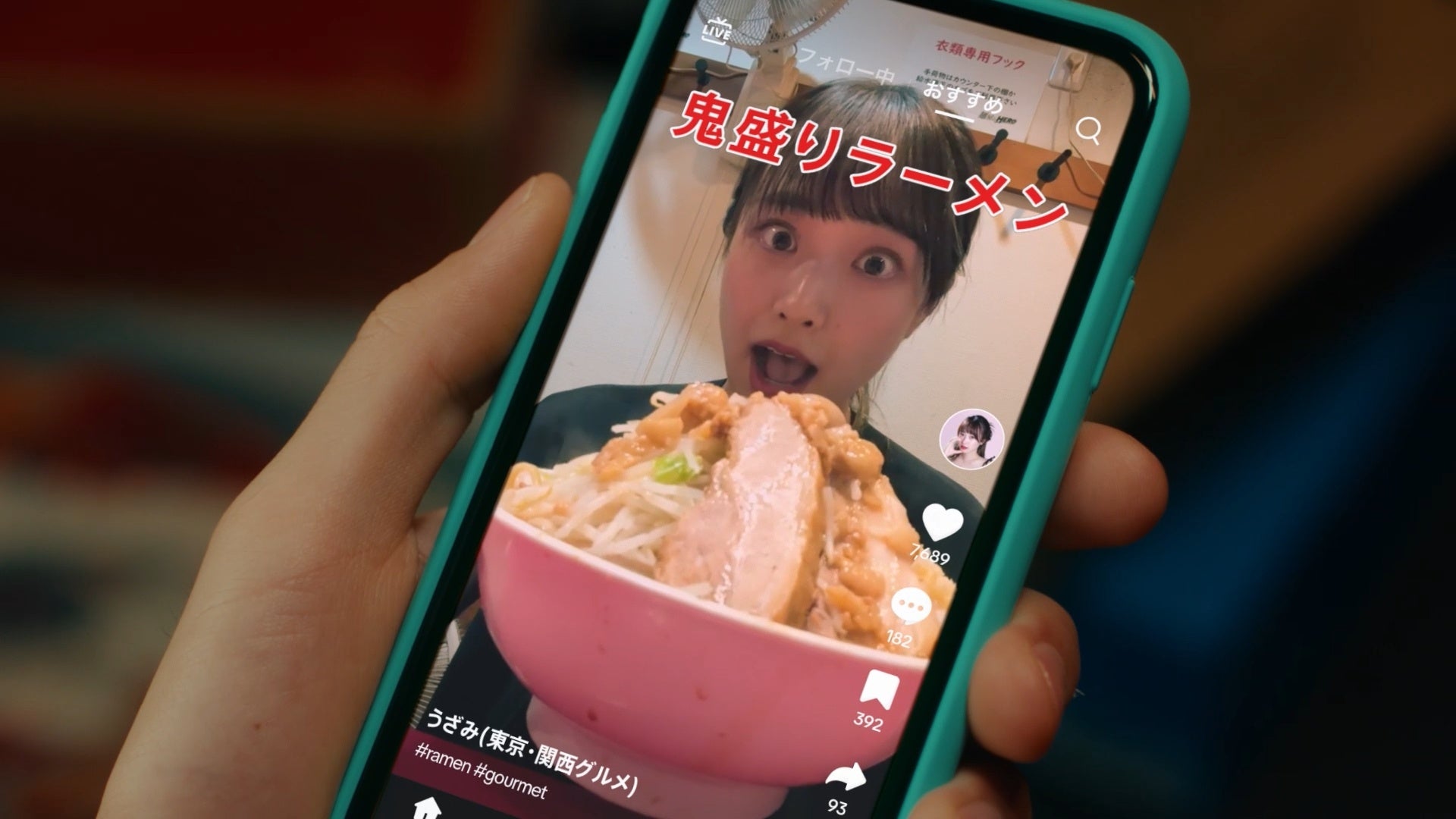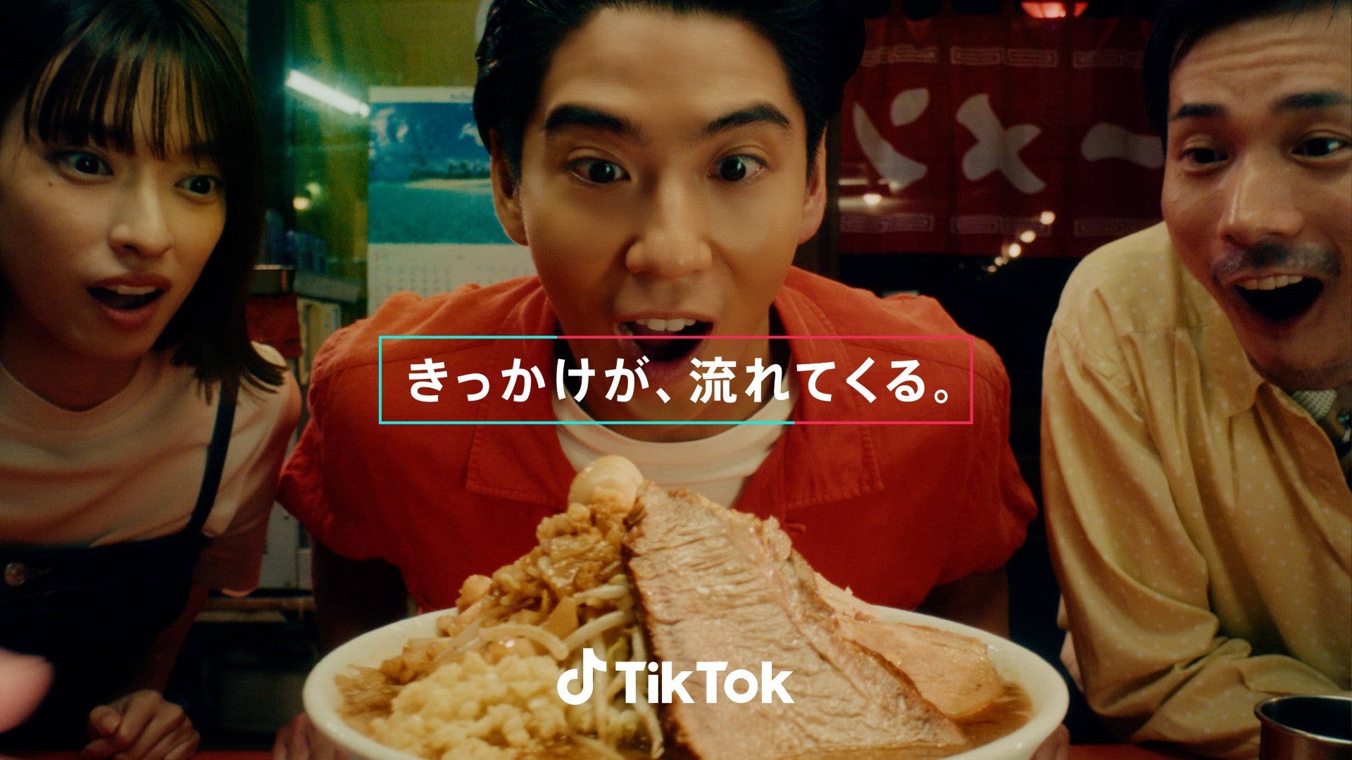 TikTokを見ていてつい動画と同じことをしてしまう、という経験は多くの人が持っているのではないでしょうか。美味しそうなラーメンの動画を見て夜ご飯をラーメンにしたり、旅行の動画を見て次の行き先を決めたり。今回のCMでは、そんな誰もが共感できる生活のワンシーンを豪快に、爽快感あふれる様子で表現しています。TikTokで見た動画に合わせて1日が目まぐるしく展開していく様子を、賀来さんの思い切った演技と合わせて、ぜひお楽しみください。