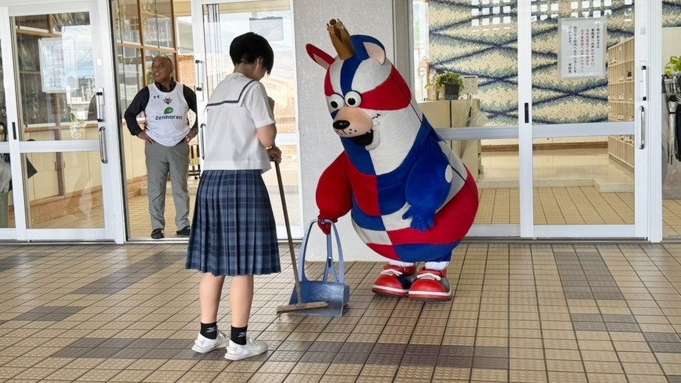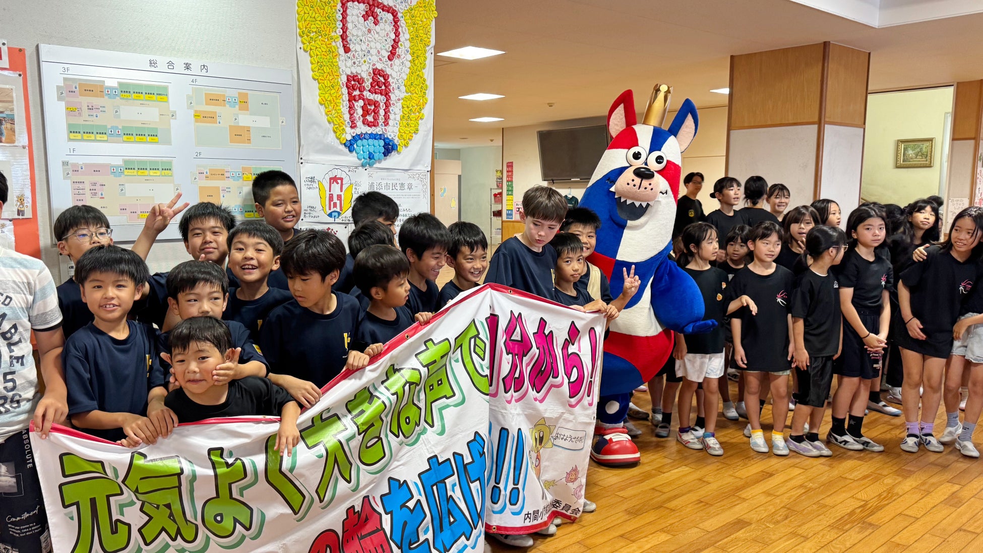 元気な子どもたちと共にあいさつ運動を行いながら、朝の清掃活動ではゴーディーもお手伝いし、一緒に楽しい時間を過ごしました。梅雨の時期であいにくの天候が続きましたが、子どもたちとの交流を通して、晴れやかな気持ちで1日をスタートすることができました。