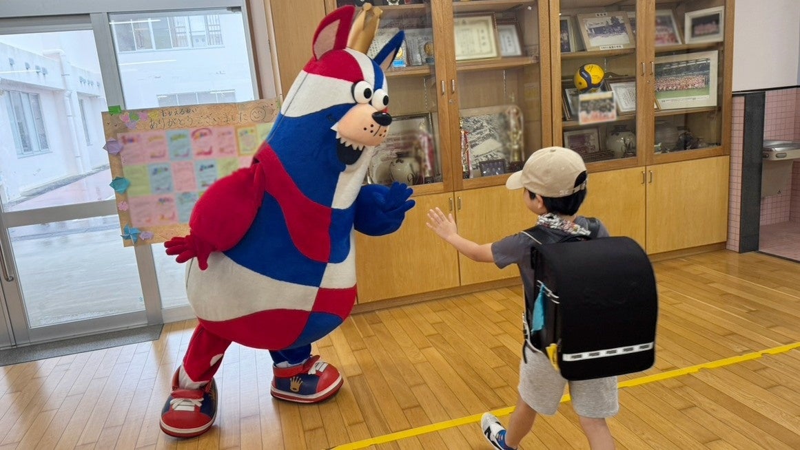 「おおきなわ」の活動の一環として実施している「ゴーディーによる朝のあいさつ運動」において、6月はホームタウン沖縄市、那覇市、浦添市、西原町の小中学校を訪問しました。ご協力いただいた各学校の皆さま、ありがとうございました。