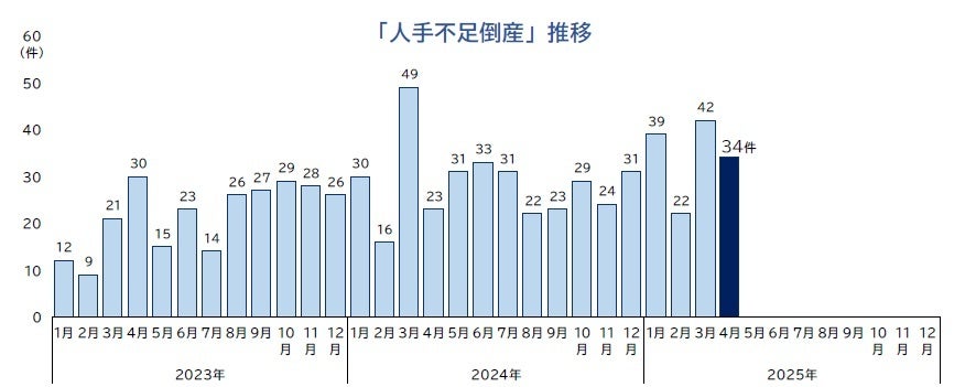 「人手不足倒産」は34件判明し、うち「退職型」は10件