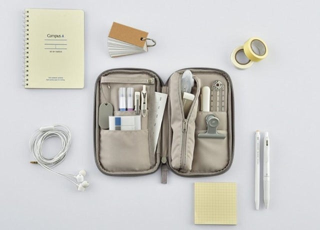 ノートのように大きく開いて中身が一覧できる、ブックタイプのペンケースです。6つのポケットとストラップホルダーにより、文具をすっきりと仕分けて収納できるため、どこに何が入っているかが一目でわかり、使いたいペンや文具がスムーズに取り出せます。スリムな形状で携帯性が高いので、外出先での勉強にもお使いいただけます。