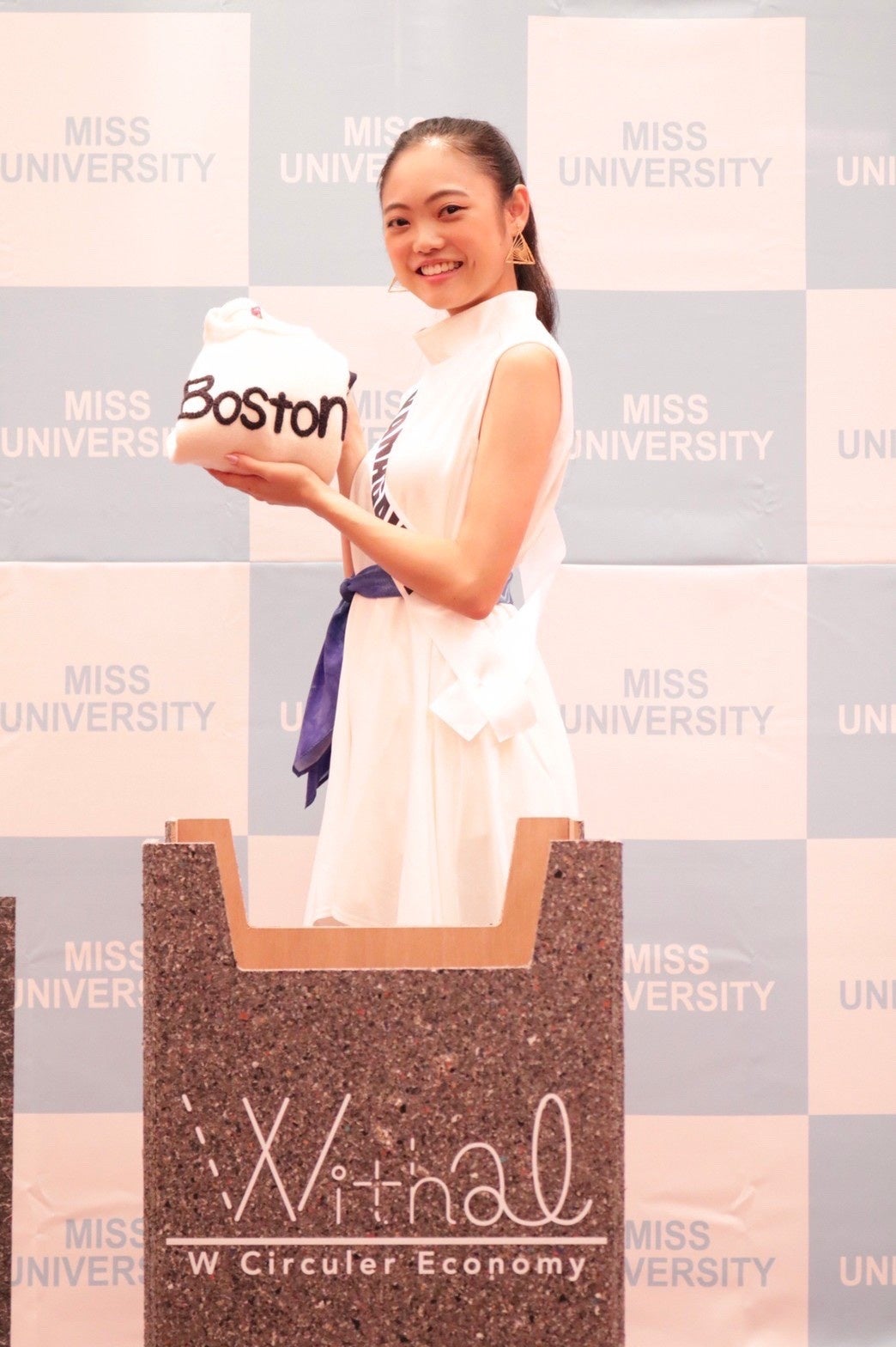 2022年9月に行われたミスユニバーシティ2022日本大会の受付にて、地球環境問題に取り組む資源環境プロジェクトWithal(ウィゾール)の『withal回収箱』を設置し来場者らへ古着の回収を呼びかけた。