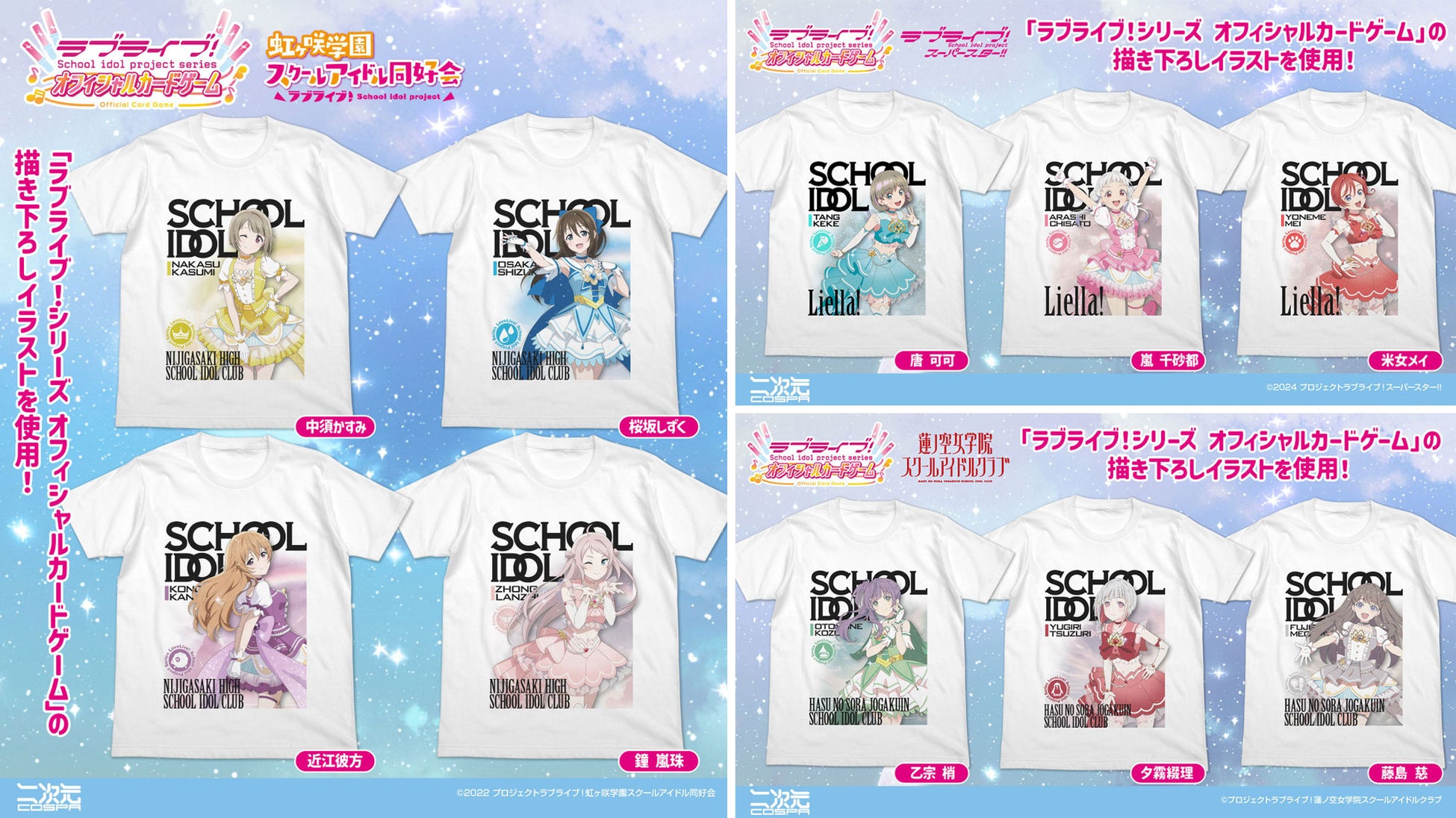 『ラブライブ!シリーズ オフィシャルカードゲーム』 描き下ろしイラスト使用した、「フルカラーTシャツ」が二次元コスパから登場です。