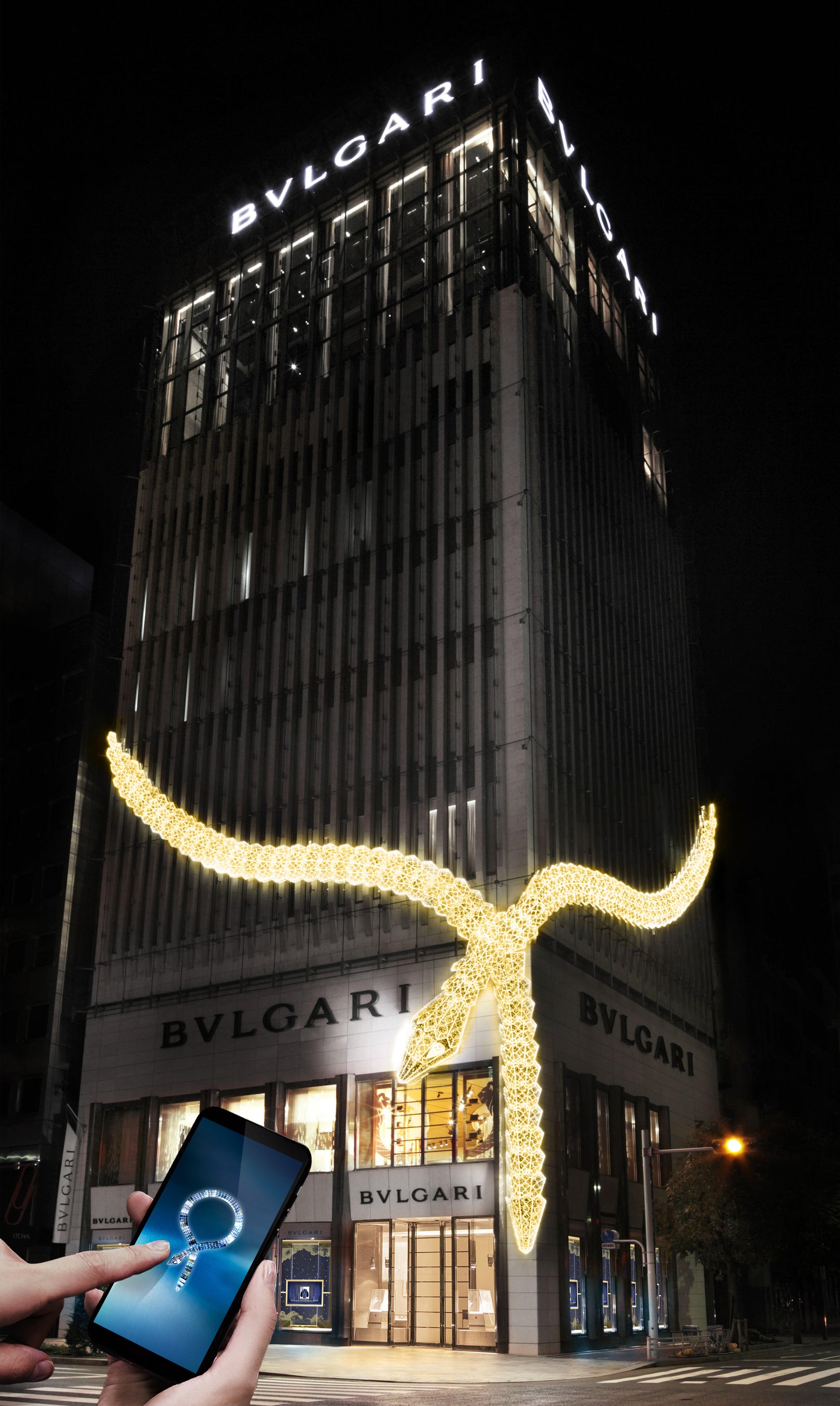 ブルガリ 銀座タワーに輝くインタラクティブなイルミネーション「ブルガリ セルペンティ スパークル 2022」