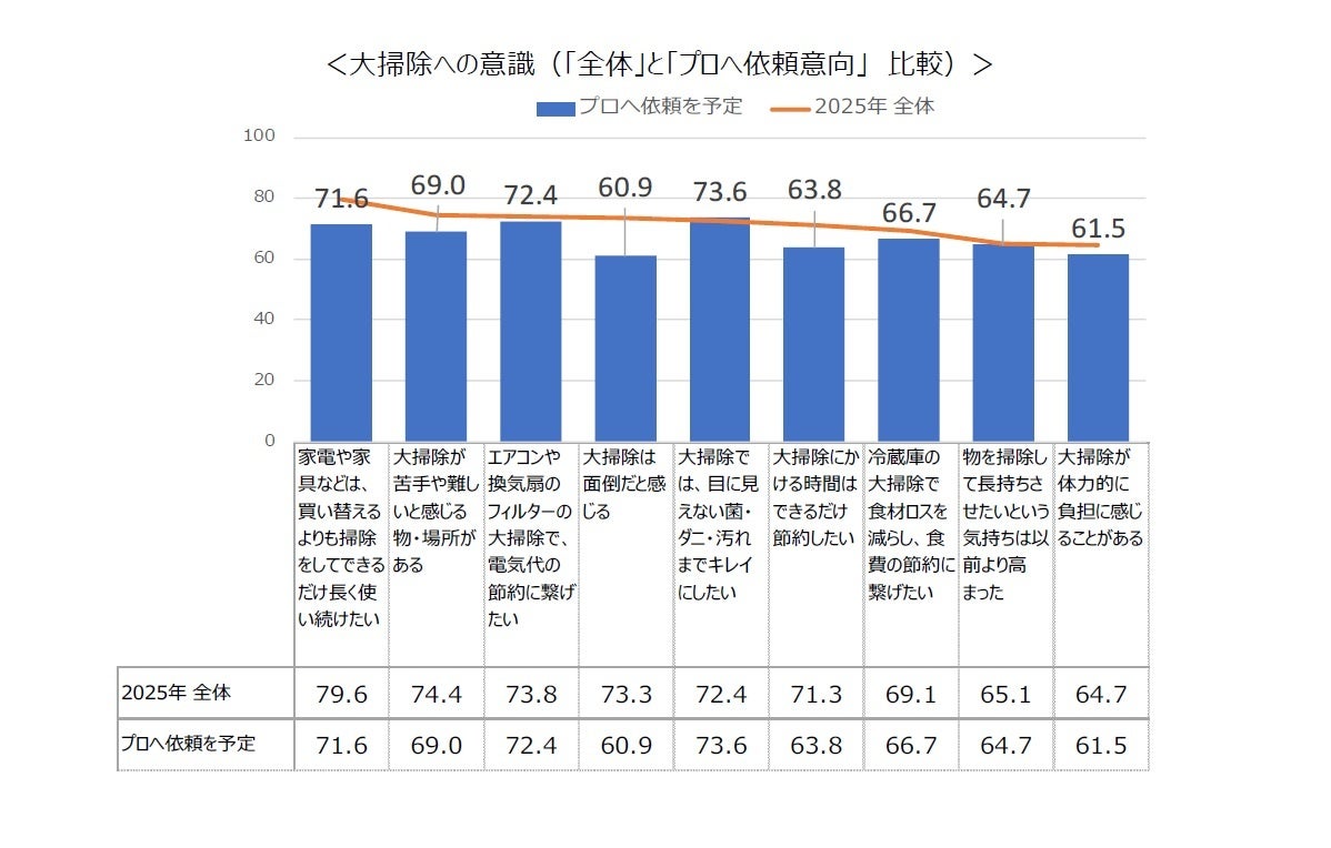 ・キレイにしたい意識の強さがプロへの依頼意向率につながっていると考えられる