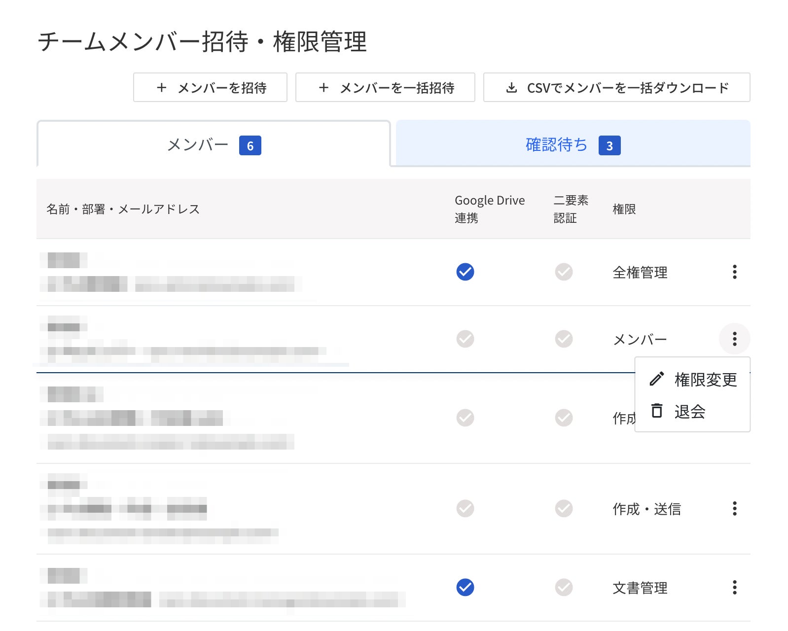 ・権限を変更するチームメンバーを選択し[権限変更]をクリックします