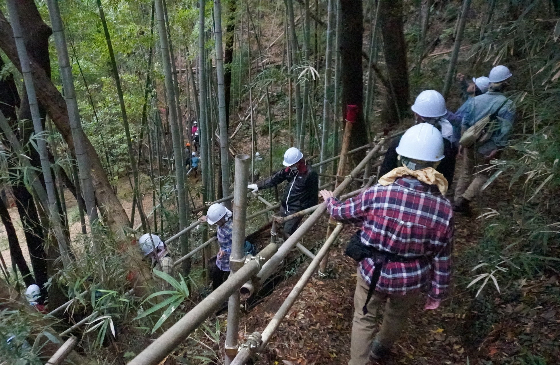 将来の担い手育成も視野に入れ、株式会社nuucotoを中心に職員や利用者、近隣住民による森林整備ボランティアとともに、孟宗竹が生い茂り枯れ落ちた広葉樹の再生を目指し整備活動を継続しています。