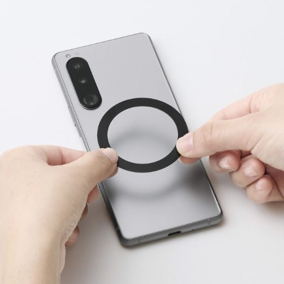 付属のメタルプレートをスマートフォンケースや端末に貼り付けることで、MagSafe非対応の機種でも使えます。