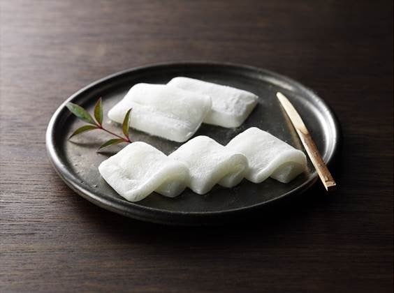 - 絹の口どけ 羽二重餅。福井の名産・羽二重織がモデルです。