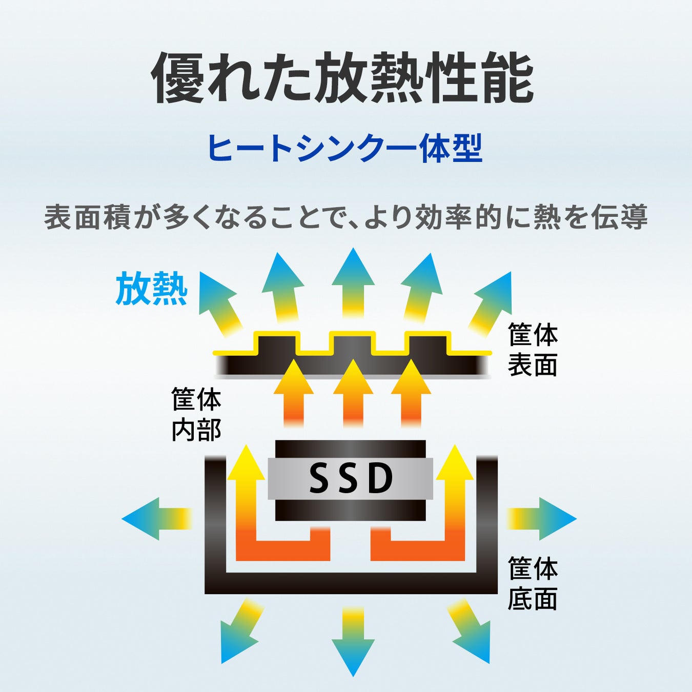 また、PS5™用SSDに必要とされているヒートシンクも一体型となっており、しっかりSSD本体を冷やします。