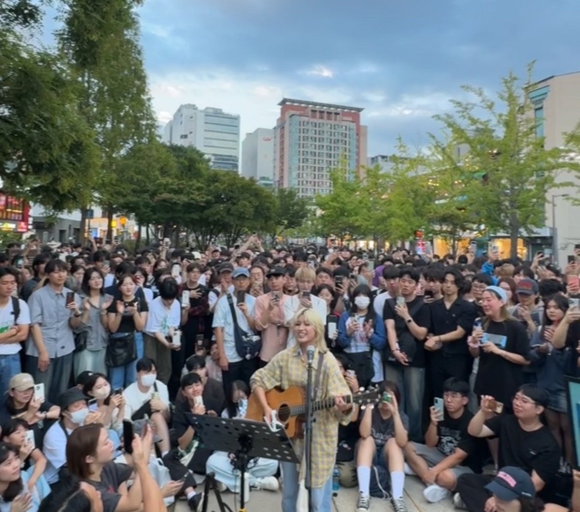 日本でバイラルヒットを起こした「うたたね」が現在韓国SNSで話題のシンガーソングライターLeina。韓国での初ストリートライブに2000人のオーディエンスが殺到し大合唱!