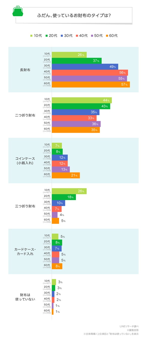 【LINEリサーチ】普段使っているお財布は「長財布」が1位!年代によってお財布のタイプと入れているものが異なる傾向に