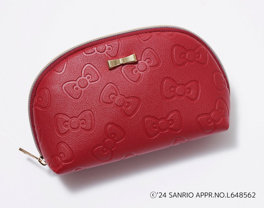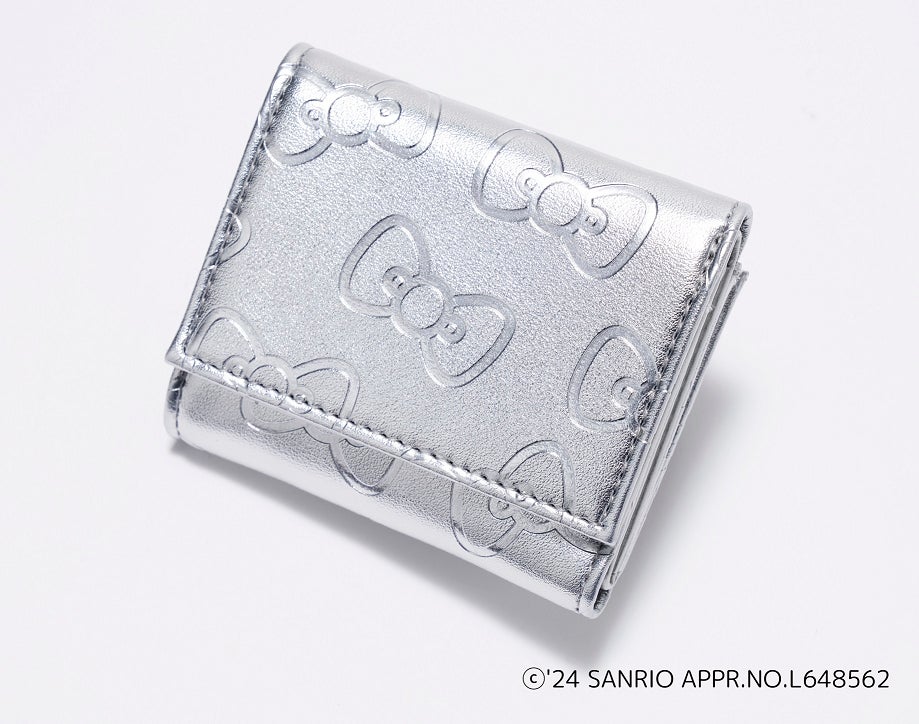 ハローキティのアイコンでもあるリボンモチーフをフェイクレザーにエンボス加工しています。コンパクトながらお札はもちろん、カードも3枚収納できて小銭入れにはファスナーも付いている、groveで人気の3つ折財布です。