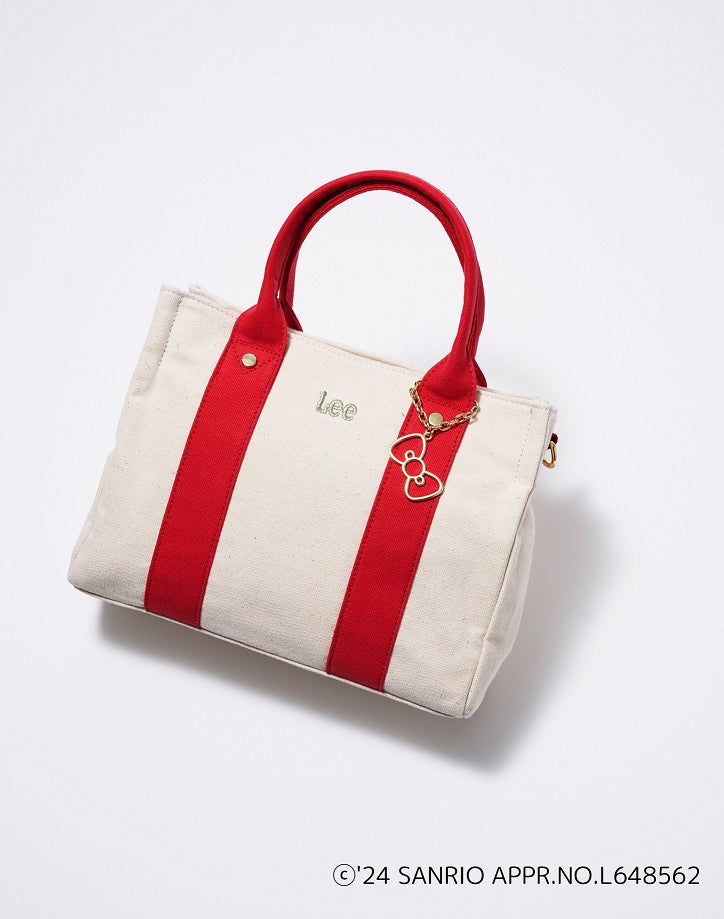Lee別注のトートバッグです。ハローキティのアイコンでもあるリボンモチーフをキルティング加工で施しています。本体開閉は中が見えにくいファスナー収納。ショルダー付きの2WAY仕様です。