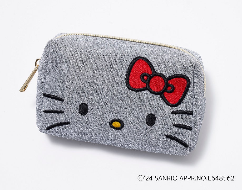 ハローキティのお顔がキラキラのラメ素材に刺繍されたキュートなポーチです。絶妙なサイズ感で持ち運びにも便利。