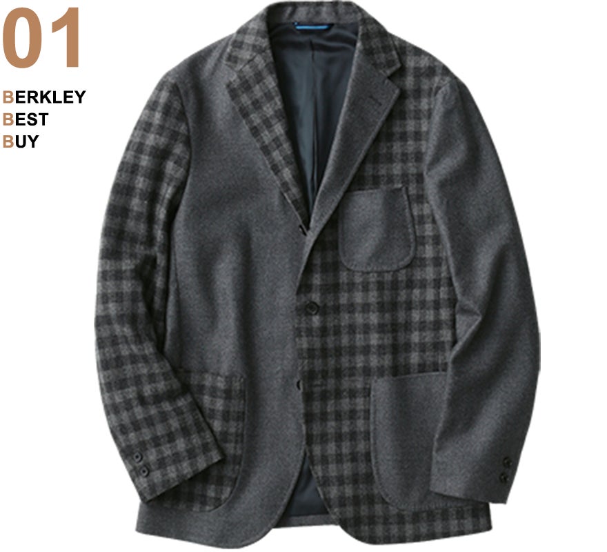 起毛感のある無地とチェック柄の生地を組み合わせたクレイジーパターンのジャケット。トラッドならではのボックスシルエットが特徴のⅠ型モデルを採用しています。