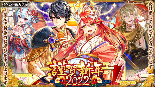 イベント内で活躍する、「リュオン&イスカ」「ヨミチ」「サージュ」の3人が「謹賀新年 2022ガチャ」に登場しております。