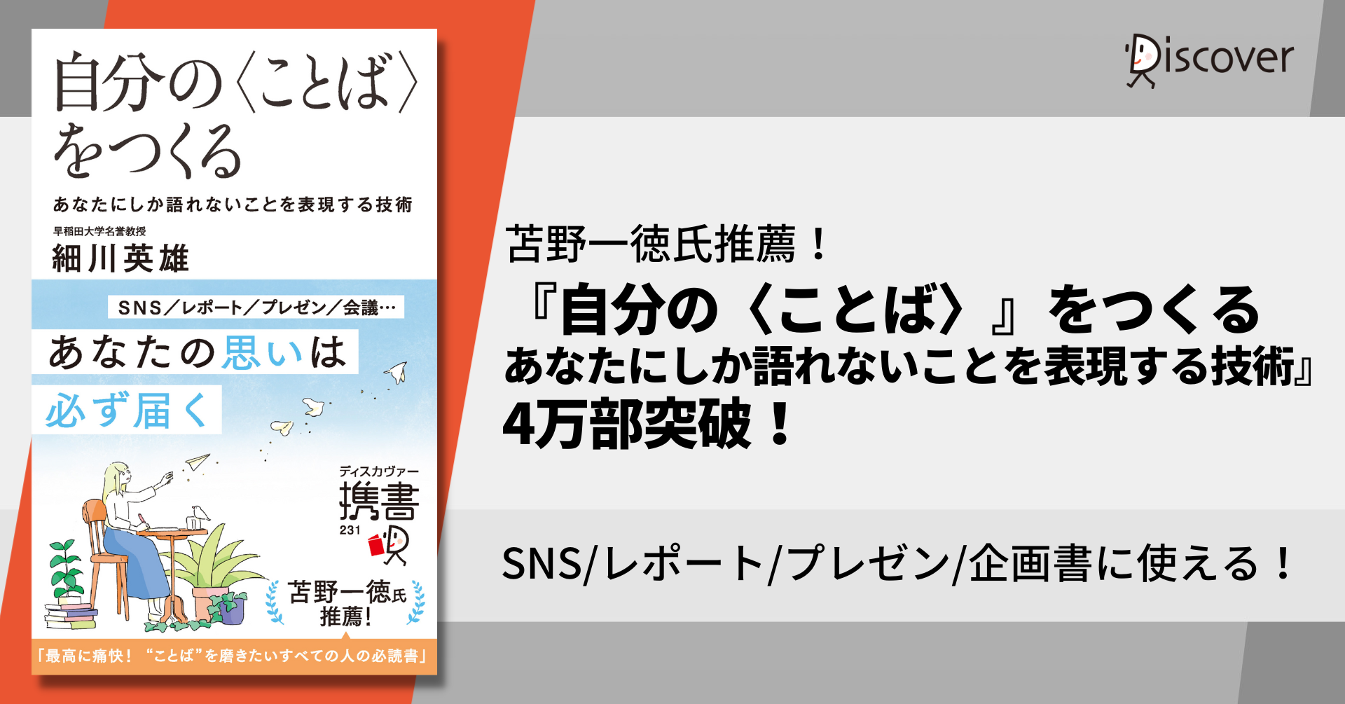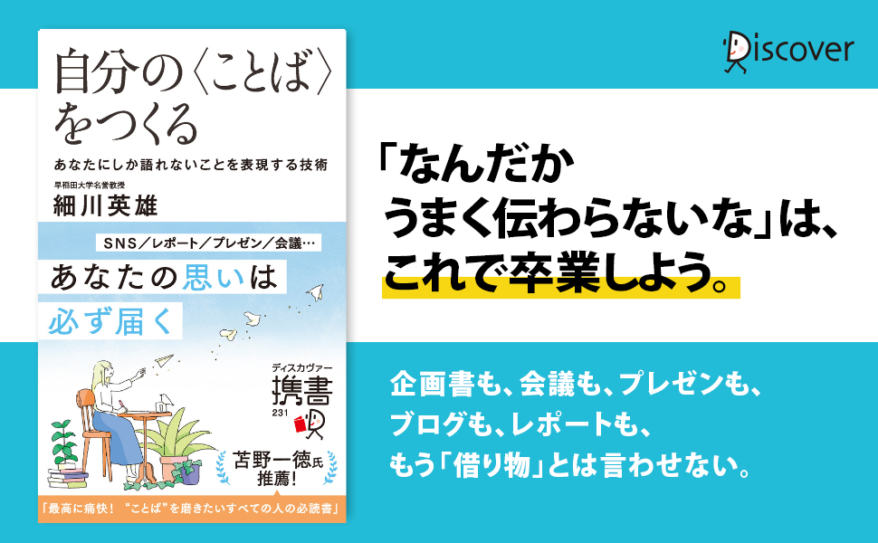 株式会社ディスカヴァー・トゥエンティワン(本社:東京都千代田区、取締役社長:谷口奈緒美)は2023年4月18日ごろより、『自分の〈ことば〉をつくる あなたにしか語れないことを表現する技術』(細川英雄・著)の新帯版を展開開始します。