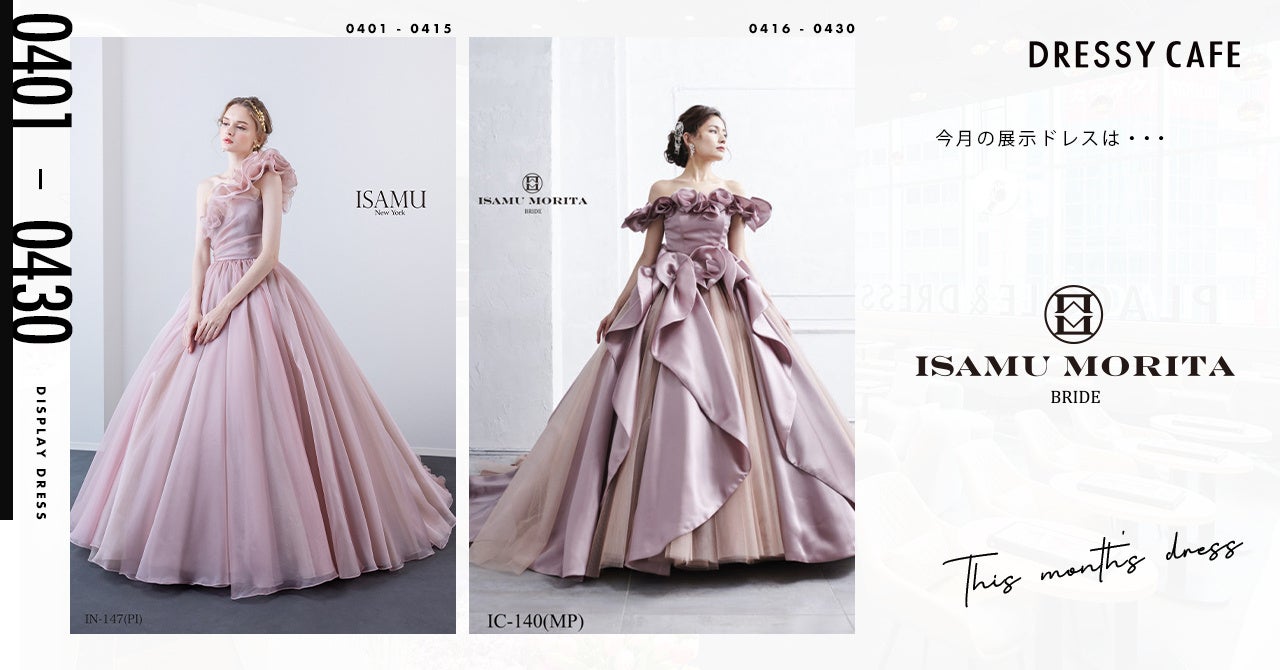 【DRESSY CAFE NAGOYA】4月のディスプレイドレスは「ISAMU MORITA BRIDE」のウェディングドレスを期間限定でお届けいたします。
