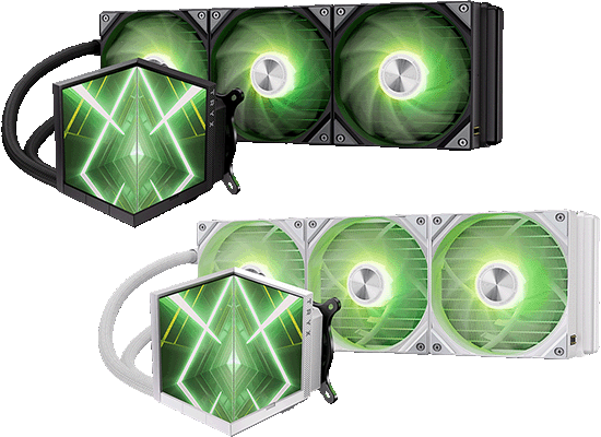 【ラジエーター】 素材:アルミニウム サイズ:360 mm 【ポンプ】 ポンプスピード:800~2600 ±10% RPM 【ファン】 型式:Rota SL ARGB 数:3 寸法:120x120x25 mm ファンスピード:500~1850±10% RPM 【スクリーン】 サイズ:4.0インチ x2 解像度:720x720 x2 |