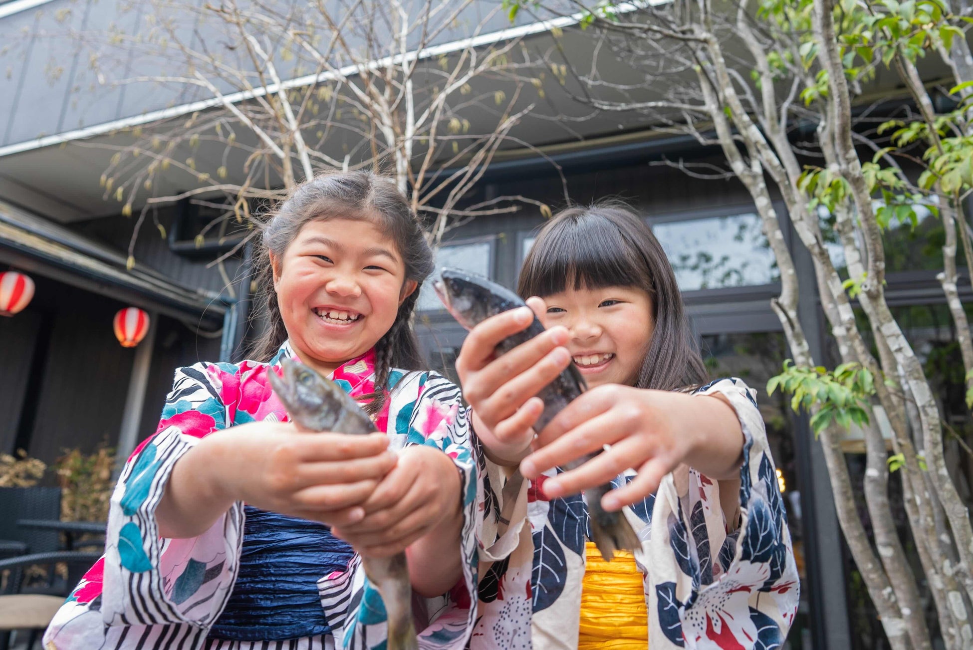 ニジマス、もろこを制限時間内に何匹取れるかチャレンジ! 大きな魚ではないのでお子さまもチャレンジできます。つかまえた魚は唐揚げにしてお召し上がりいただくことも可能です。