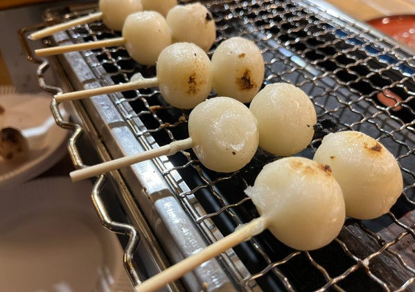 白寿の湯スタッフの「あやか」が焼きたてのお団子を販売します! 「みたらし」か「あんこ」でお召し上がりください。