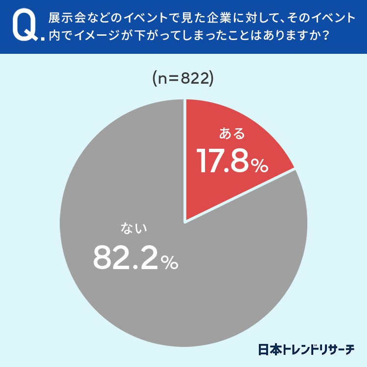 17.8%の方が、展示会などのイベントで見た企業に対して「イメージが下がってしまったことがある」と回答しています。