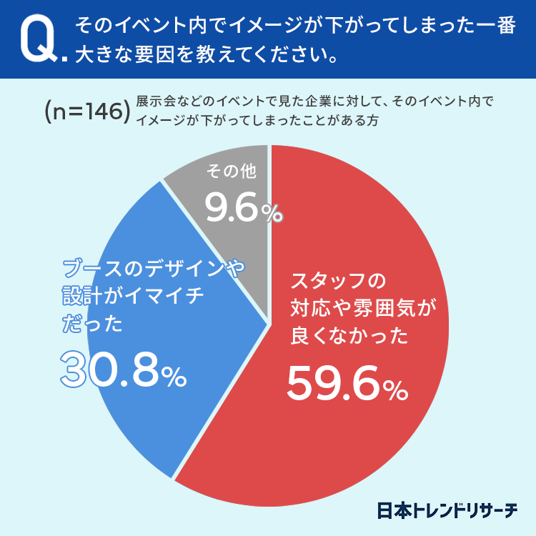 一方で「ブースのデザインや設計がイマイチだった」も30.8%と、決して少ない数字とはいえません。