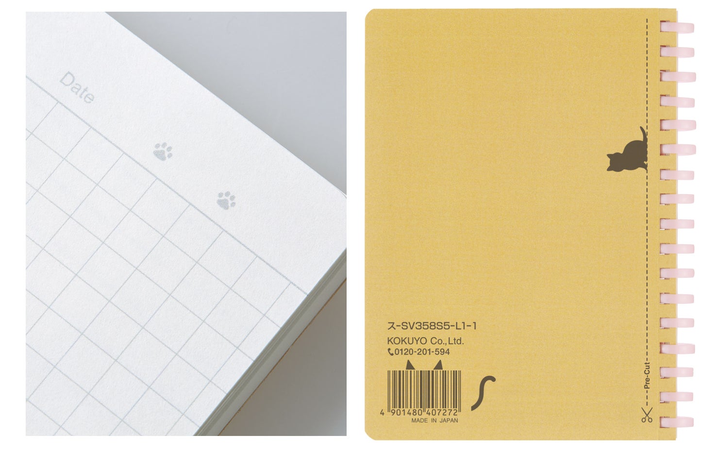 ソフトリングのやわらかさと親和性のある子ねこの肉球やふわふわなパンをモチーフにした10周年記念のソフトリングノートシリーズです。罫線は使いやすい5mm方眼罫で、枚数は80枚です。