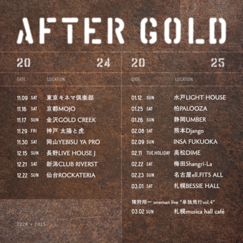 そしてバンド結成20周年を記念した全国ツアー20th anniversary tour “AFTER GOLD”も同時に発表された。