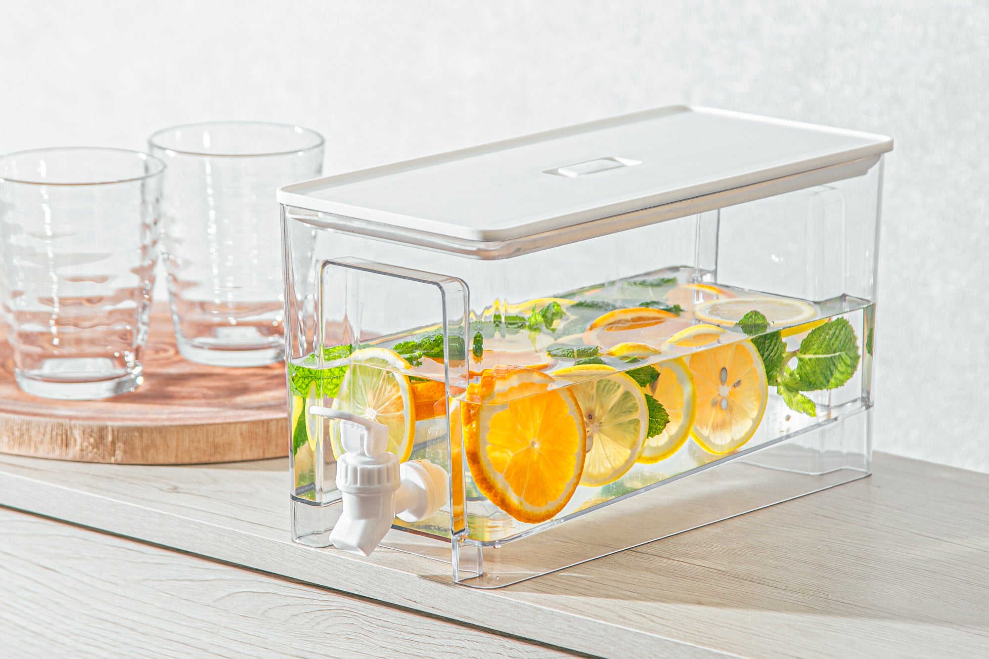 冷蔵庫の棚に収納できる、底面に傾斜のついたドリンクサーバーを新発売!
