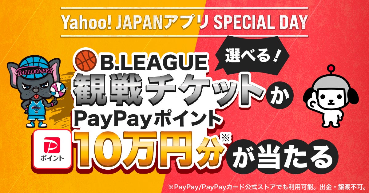 LINEヤフー株式会社(以下、LINEヤフー)は、「Yahoo! JAPAN」アプリの冠試合「Yahoo! JAPANアプリ SPECIAL DAY」を、4月13日(日)の佐賀バルーナーズ戦において開催します。本試合の開催を記念して、観戦チケットやPayPayポイント(※1)が当たる事前キャンペーンを本日より実施します。