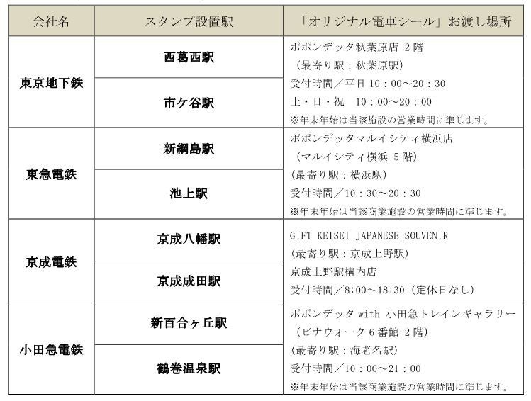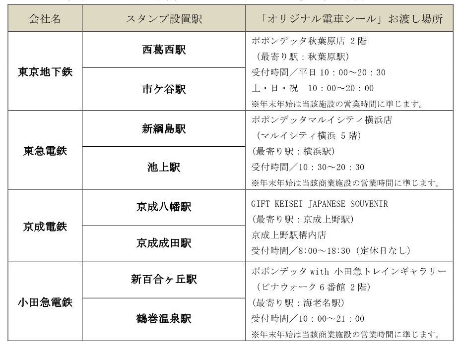 3 スタンプ設置駅および各社達成賞「オリジナル電車シール」お渡し場所