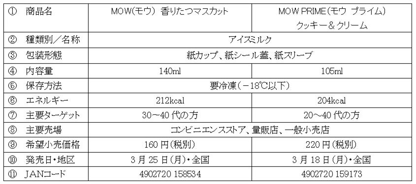 マスカットの芳醇な香りとモウらしいミルクの絶妙なバランスが堪能できる。さらに「MOW PRIME(モウ プライム) クッキー&クリーム」もグレードアップして3月18日(月)より全国にて発売
