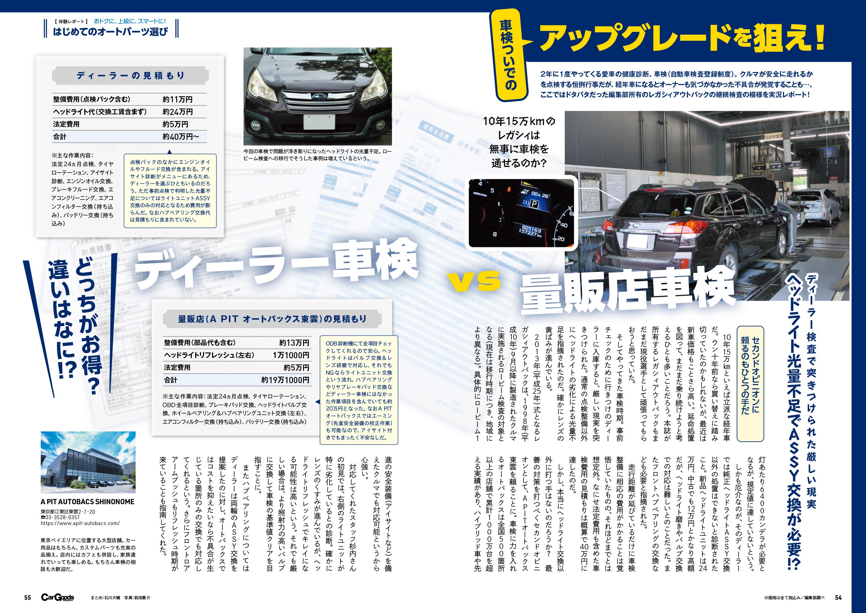 用品・グッズというよりも、部品・パーツをターゲットとするカスタマイズ特集は第三特集にて。車検時にステップアップを狙う実体験レポートも収録。