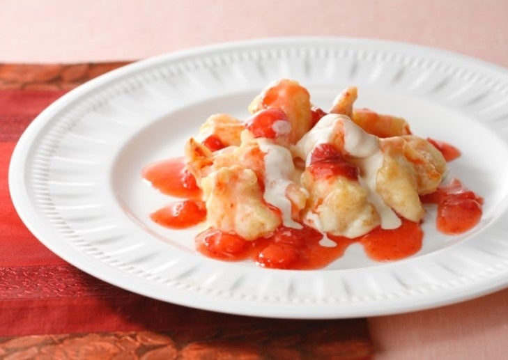 人気の海老マヨを旬のイチゴを使った甘酸っぱいストロベリーマヨネーズソースに