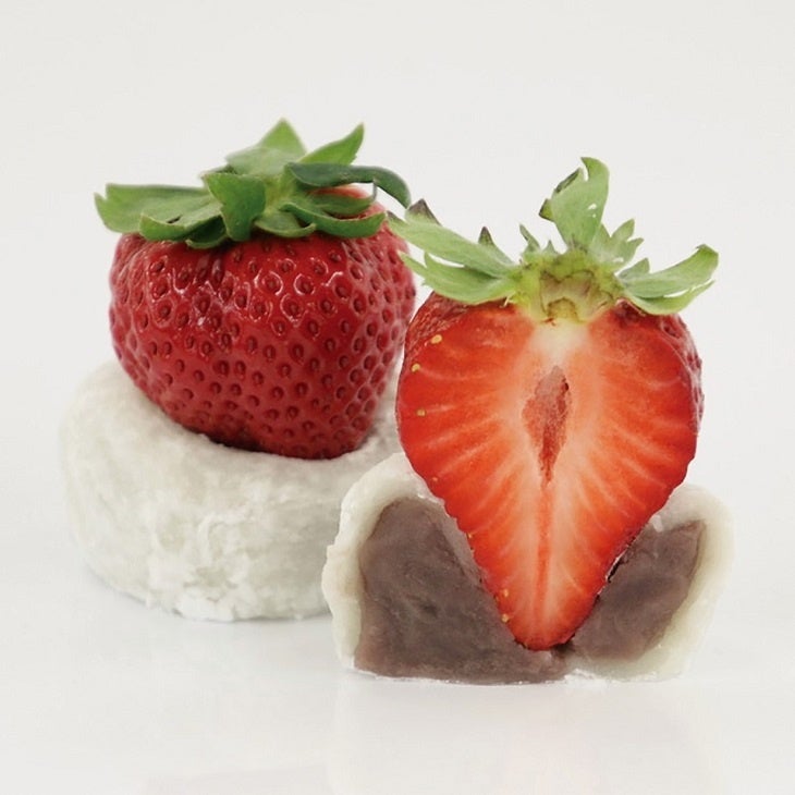 やわらかお餅に上品なこしあんは、いちごを引きたてるため、甘さひかえめです。