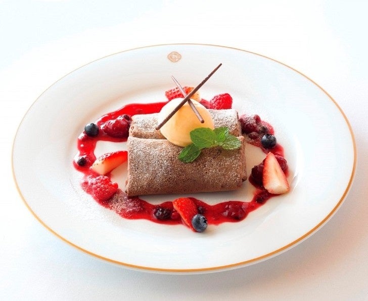 もちもちのクレープ生地でチョコホイップを包み、イチゴをトッピング。