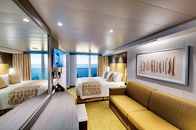 左:MSCベリッシマ 右:海側バルコニー付船室(イメージ)
