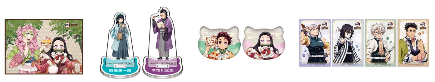| S賞 ランチョンマット (全3種) | A賞 ミニアクリルスタンド※4 (全5種) | B賞 ねこ型缶バッジ※5 (全20種) | C賞【ランダム配付】 ステッカー (全15種) |